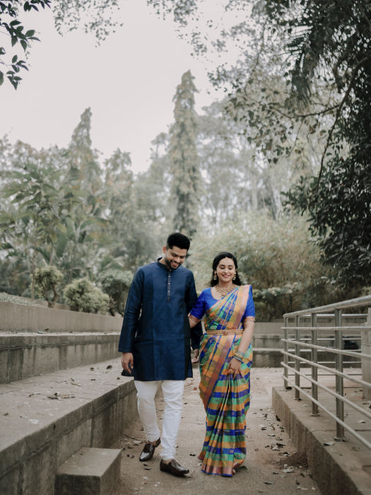 Later, away from the audience and still in their engagement attire, Sanjana and Samarth stood together once more — no speeches left, no expectations remaining.